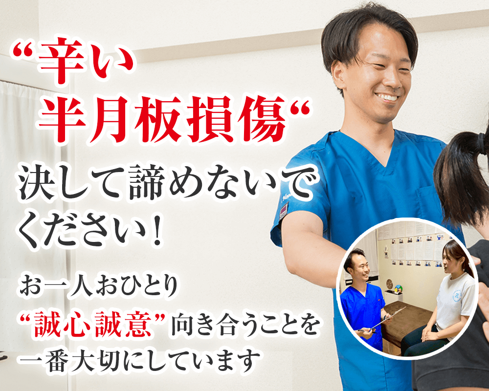 - 3つ以上の病院、接骨、整体院に通ってみたが半月板損傷が改善しなかった。